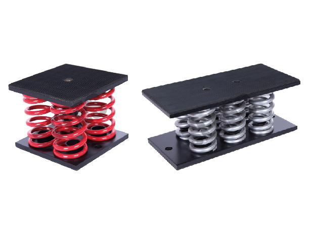 DFG型組合式彈簧減振器是采用多重組合彈簧為主體,上下配置鋼板及防滑橡膠墊組成。該產品充分利用綜合鋼彈簧的低頻和橡膠減振的阻尼特性,可消除高頻傳遞,達到明顯的減振降噪效果,又能解決機械設備重心不均的減振難點。-4為4組彈簧組合、-6為6組彈簧組合。